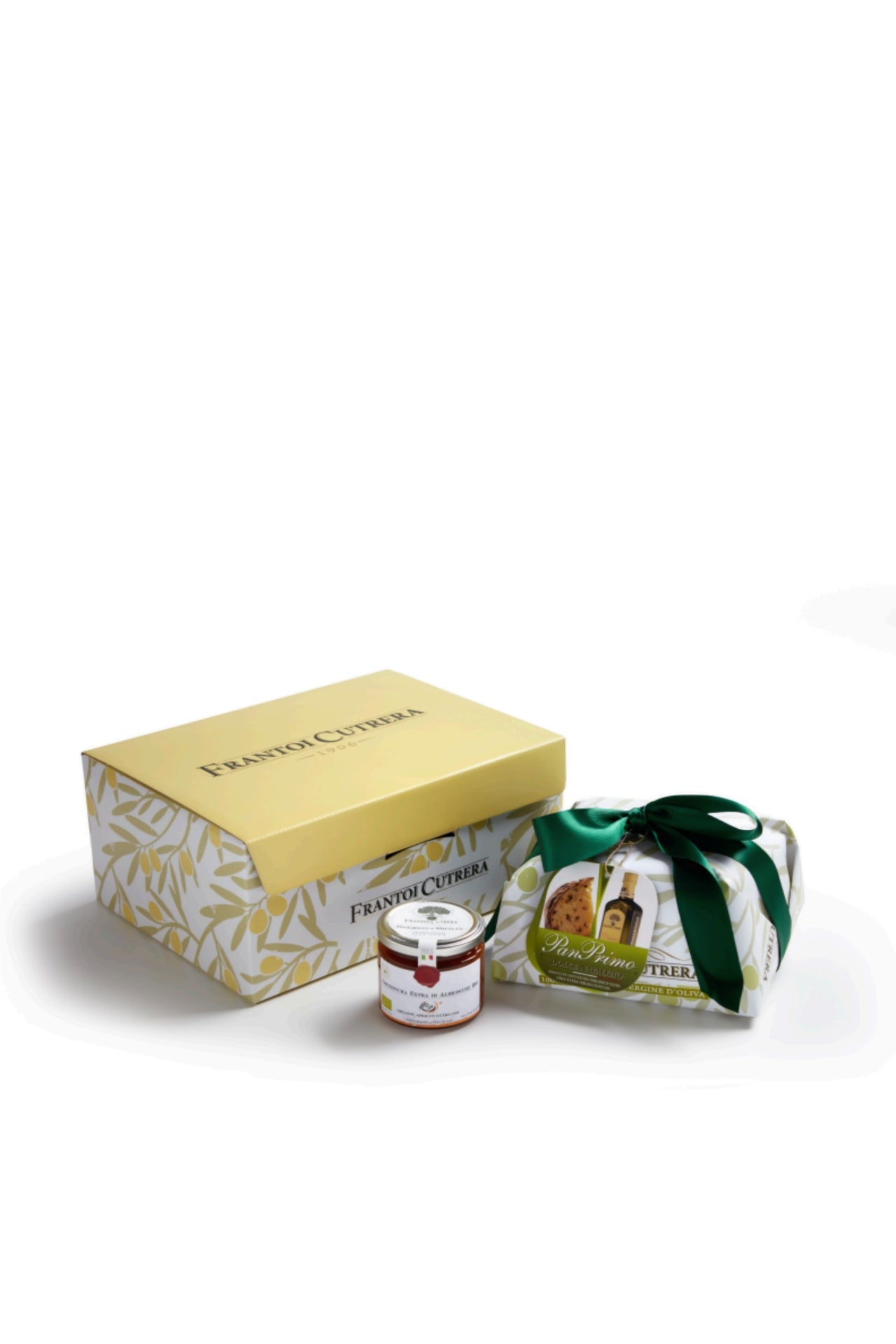 Contenuto: 1 dolce Natalizio “PanPrimo” all’olio extra vergine di oliva Frantoi Cutrera 750g & 1 vasetto confettura extra di albicocche 225g biologica.