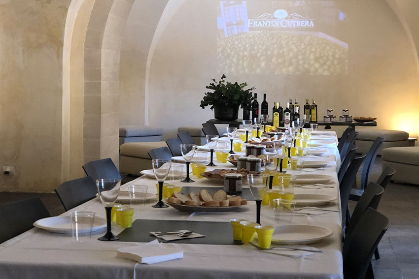 DEGUSTAZIONE guidata di tre oli EVO Frantoi Cutrera (presso la nostra Scuola dell’olio), preceduta da un’introduzione alle tecniche di assaggio.