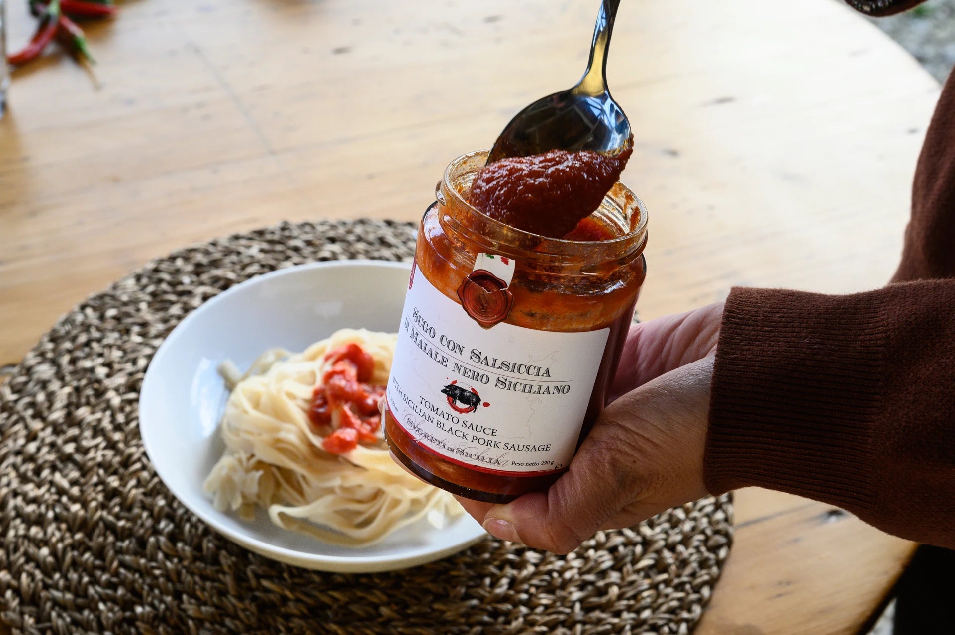 • Comment est produite la sauce Segreti di Sicilia avec des saucisses de porc noir siciliennes