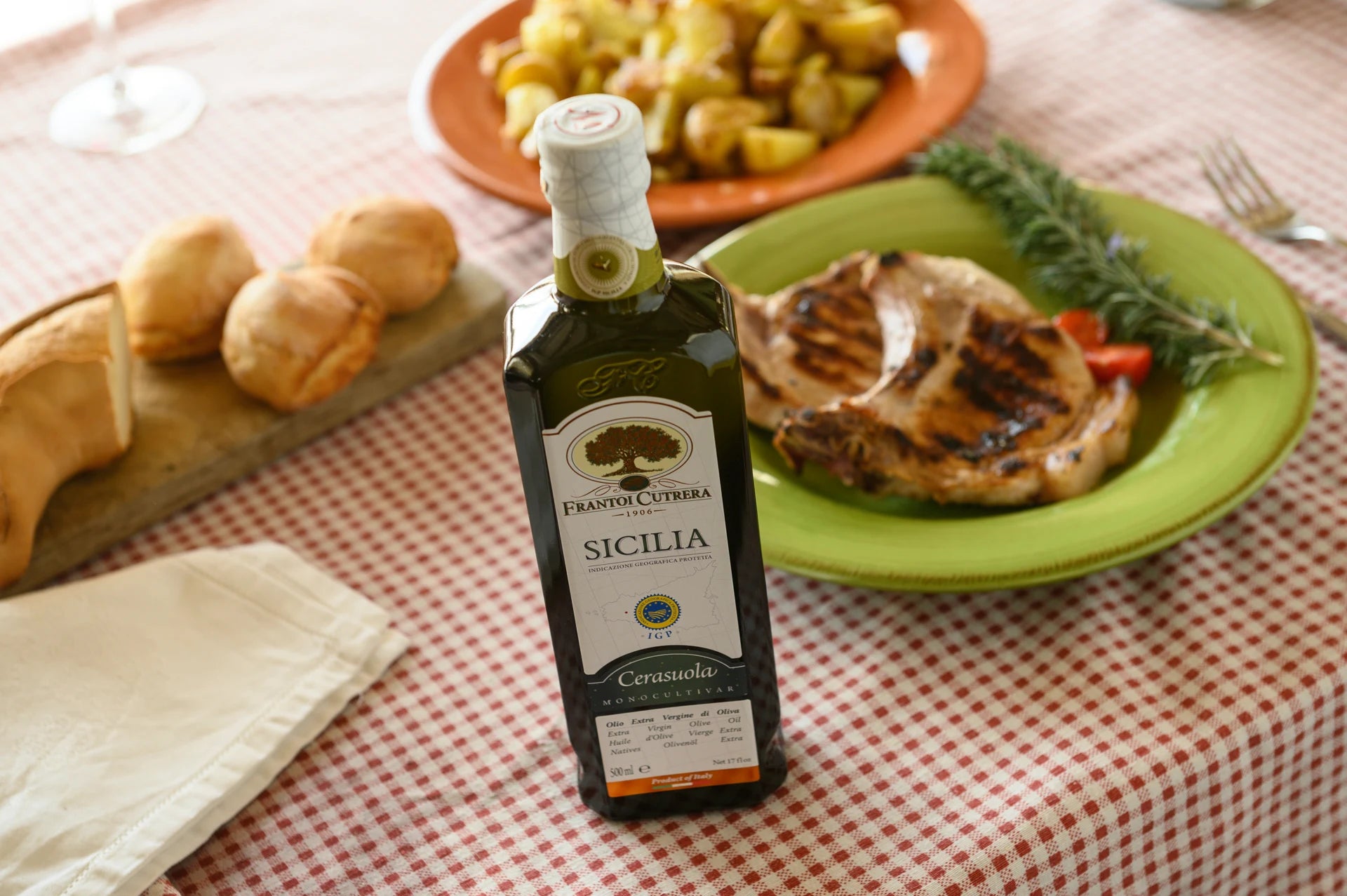 Le monocultivar Cerasuola IGP est l'huile d'olive extra vierge obtenue à partir des oliveraies de Cerasuola, une variété typique de diverses régions de la Sicile, en particulier la zone centrale et occidentale. Celles utilisées pour notre huile proviennent de la région de Sciacca, proche de la mer et ses caractéristiques organoleptiques profitent de cette position géographique privilégiée.
