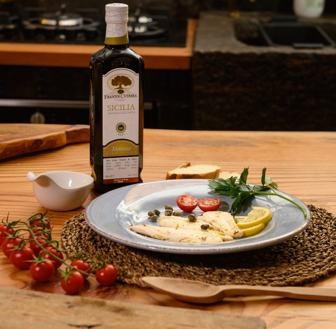 Le monocultivar Moresca IGP est une huile délicate et fruitée dans laquelle l'amertume et le piquant ne sont que légèrement présents et de manière très équilibrée. Cela en fait le condiment idéal pour les crudités de poisson, les calamars frits, les poissons cuits à la vapeur, les salades délicates et les salades de fruits de mer.