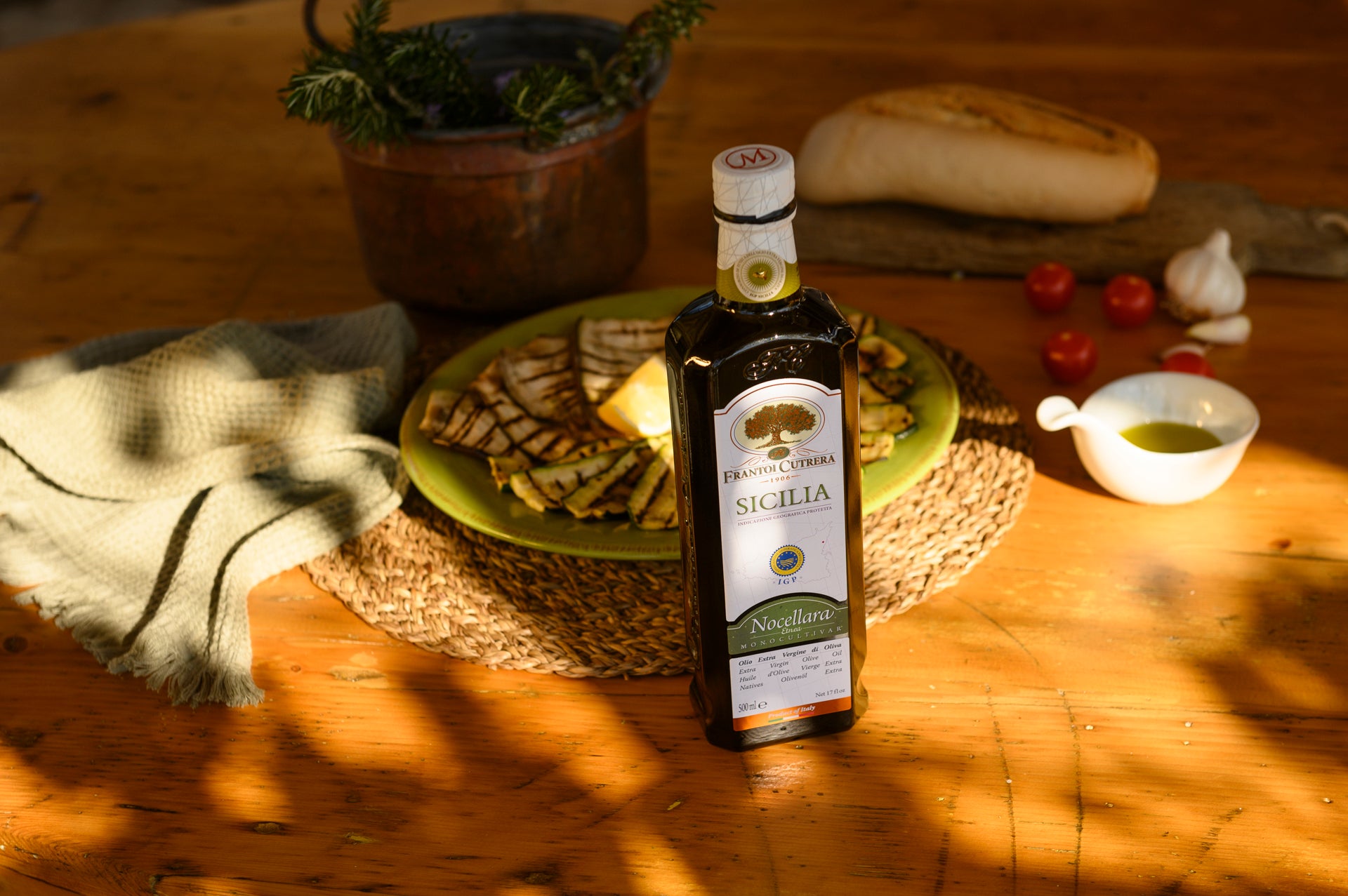 La Monocultiva Nocellara Etnea IGP est reconnaissable à la marque appropriée sur l'emballage. Il garantit que l'huile a été produite selon les spécifications établies par le "Consortium pour la valorisation et la protection de l'huile d'olive extra vierge IGP Sicile". En plus des normes de qualité élevées (les mêmes que celles que nous suivons pour tous nos produits), le cahier des charges exige que l'huile soit pressée sur le territoire sicilien et uniquement à partir d'olives cultivées sur l'île. Une norme que nous suivons également pour toutes les autres huiles d’olive extra vierge que nous produisons.