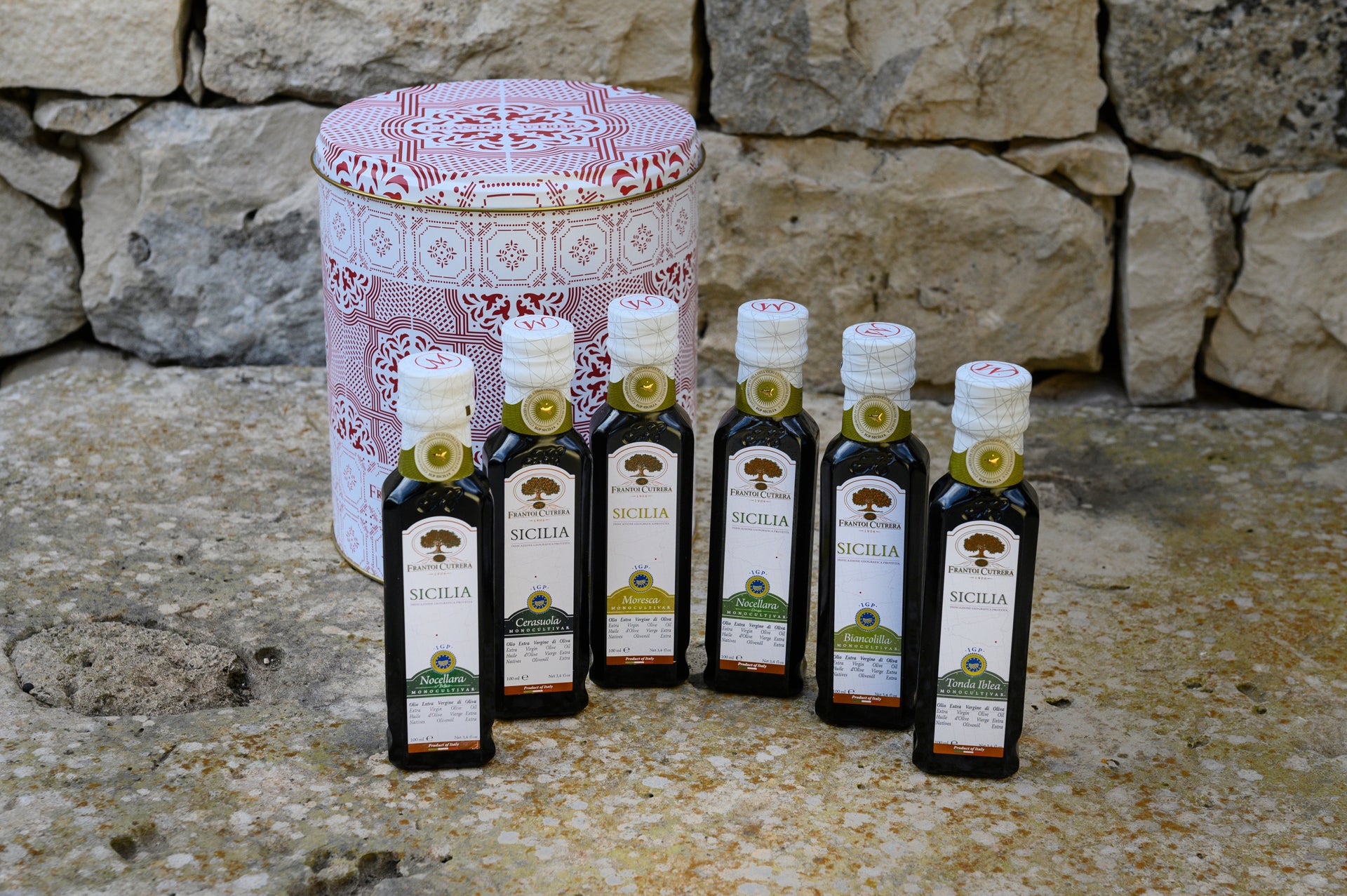 Prodotto in Italia. Monocultivar Biancolilla IGP è un olio fruttato medio ottenuto da Biancolilla, la varietà tipica della Sicilia centro occidentale (Ribera e Caltabellotta). Da uliveti esposti a sud, a 150-250 metri di altitudine.